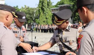 Jateng7.com.PATI –Kepolisian Resor Kota Pati (Kapolresta) Kombes Pol Andhika Bayu Adhittama, S.I.K, M.H pimpin Serah Terima Jabatan (Sertijab) 6 Kasat dan 5 Kapolsek, bertempat di halaman Mapolresta Pati, Senin (20/02/2023) Pagi.