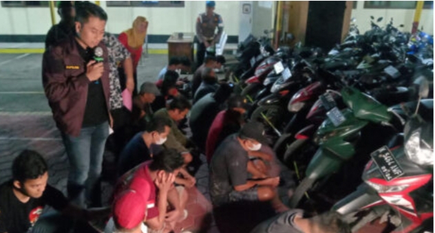 Diketahui, sebanyak 17 orang, 76 unit sepeda motor, dan 21 ekor ayam diamankan petugas dalam penggerebekan perjudian sabung ayam di Desa Karanganyar, Kecamatan Purwodadi, Kabupaten Grobogan, Jawa Tengah, Minggu (29/1/2023).