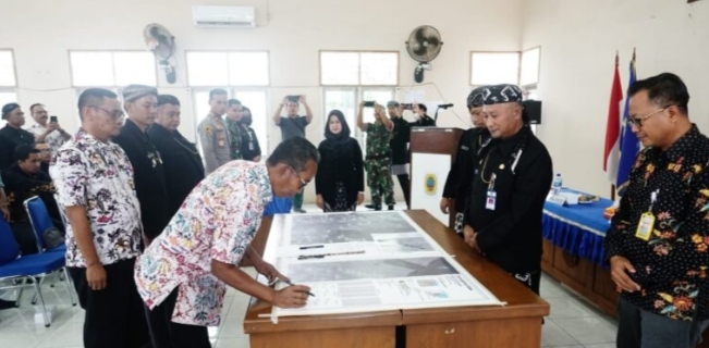 Jateng7.com.PATI-Bertempat di Aula Kantor Kecamatan Wedarijaksa, (2-03-2023), Pj Bupati Pati menghadiri penandatanganan berita acara penegasan batas desa Kecamatan Wedarijaksa.