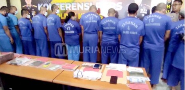 Belasan tersangka itu kini tengah menjalani pemeriksaan intensif di Polres Kudus. Polisi juga mengembangkan lebih banyak kasus, di antaranya kasus perjudian togel.(jateng7.com./sbr hms Polres Kudus).