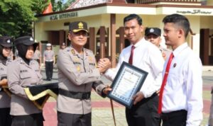 Kapolres Grobogan -purwodadi Berikan penghargaan kepada Anggotanya Yang Berprestasi Di Bidangnya.
