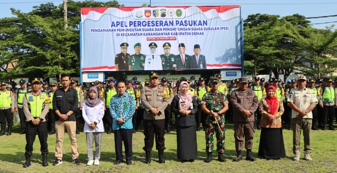 Jateng7.com.DEMAK– Kepolisian Resor Demak, Jawa Tengah, menggelar Apel Pengamanan Pemungutan Suara Susulan Pemilu Tahun 2024 di Lapangan Wicaksana Leghawa Mapolres setempat, Kamis (22/2/2024) pagi.