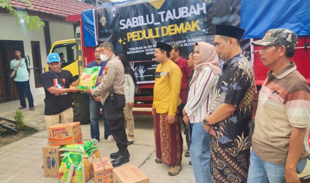 Jateng7.com.DEMAK-Sabilu Taubah dari Blitar asuhan Gus Idam memberikan bantuan kepada korban banjir di wilayah Demak sebagai wujud Peduli Demak.