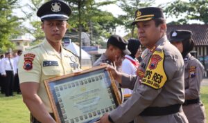 Penghargaan tersebut diserahkan Kapolres dalam upacara kenaikan pangkat PNS Polri dan pemberian penghargaan bagi anggota dan mitra Polri berprestasi yang digelar di Lapangan Wicaksana Leghawa Polres Demak, Senin (1/4/2024).