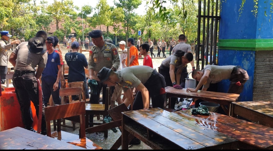 Jateng7.com.DEMAK – Pasca banjir akibat jebolnya tanggul Sungai Wulan di Kecamatan Karanganyar, Kabupaten Demak pada pertengahan bulan Maret 2024, Korps Taruna Akademi Kepolisian (Akpol) menggelar bakti sosial (Baksos) membersihkan sejumlah sekolah di wilayah tersebut.