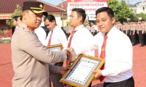 Jateng7.com.JEPARA – Kapolres Jepara AKBP Wahyu Nugroho Setyawan memberikan penghargaan kepada anggotanya yang berprestasi dalam menjalankan tugas.