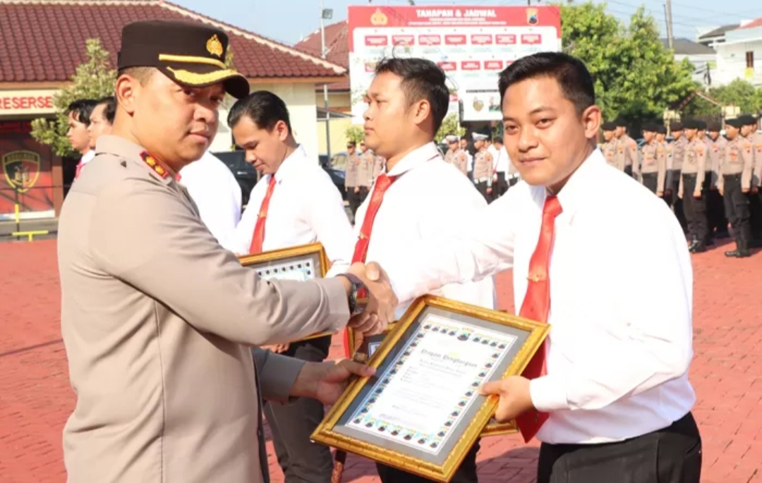 Upacara penyerahan penghargaan digelar saat apel pagi di Lapangan Apel Mapolres Jepara, Senin (27/5/2024).