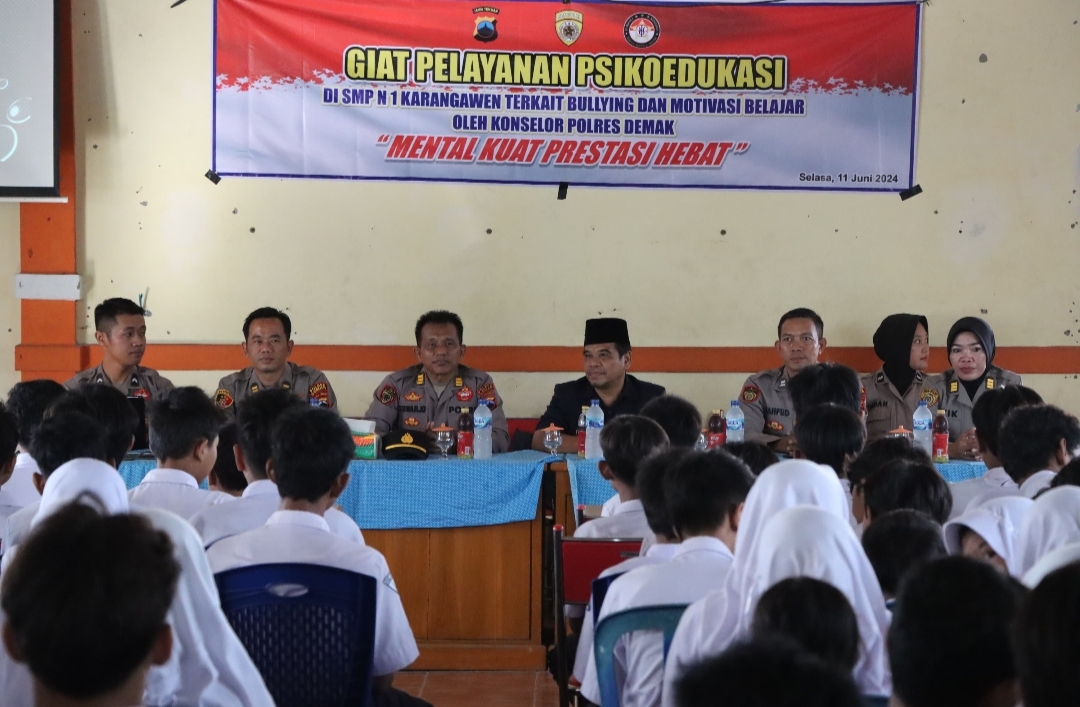 “Psikoedukasi dan sosialisasi pencegahan bullying ini untuk upaya memberikan rasa aman dan nyaman pelajar yang bersekolah guna mencegah aksi bullying atau perundungan di lingkungan sekolah,” ujar Kanit II Satreskrim Polres Demak, Iptu Kuntoro, Selasa (11/6/2024).