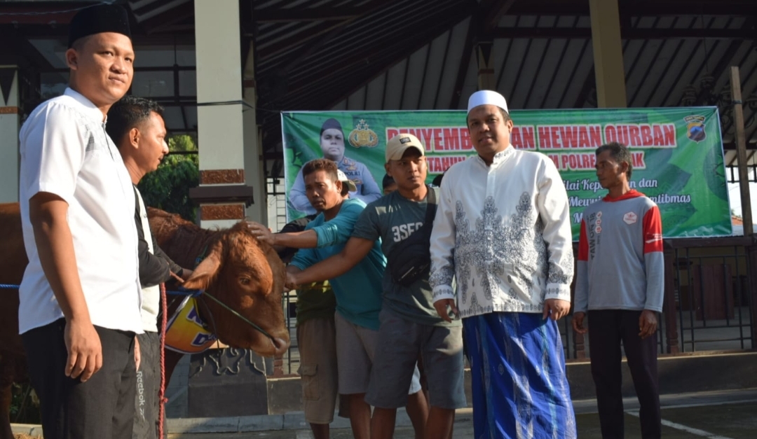 “Personel Polres Demak yang berqurban tahun ini, kami kumpulkan hewan kurbannya menjadi satu di Polres. Setelah daging qurban selesai di kemas, kami bagikan kepada masyarakat sekitar Polres Demak dan orang-orang yang membutuhkan,” ungkapnya.