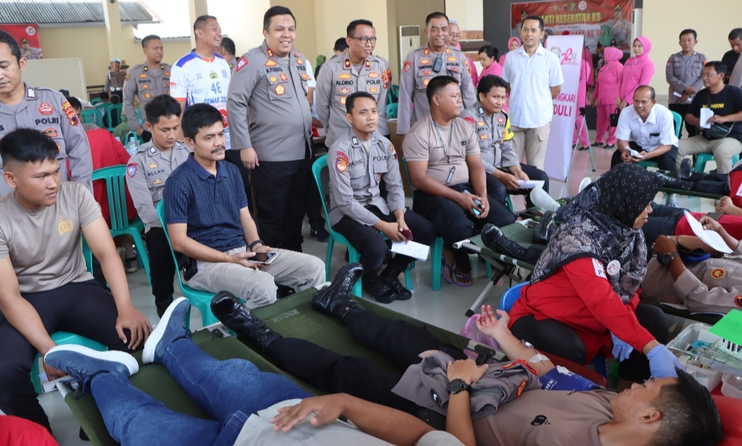 Jateng7.com.DEMAK – Sambut hari Bhayangkara ke-78 yang jatuh pada 1 Juli 2024 nanti, Polres Demak memggelar bakti sosial (Baksos) kesehatan meliputi donor darah, khitan massal dan pelayanan keluarga berencana (KB) gratis untuk masyarakat.