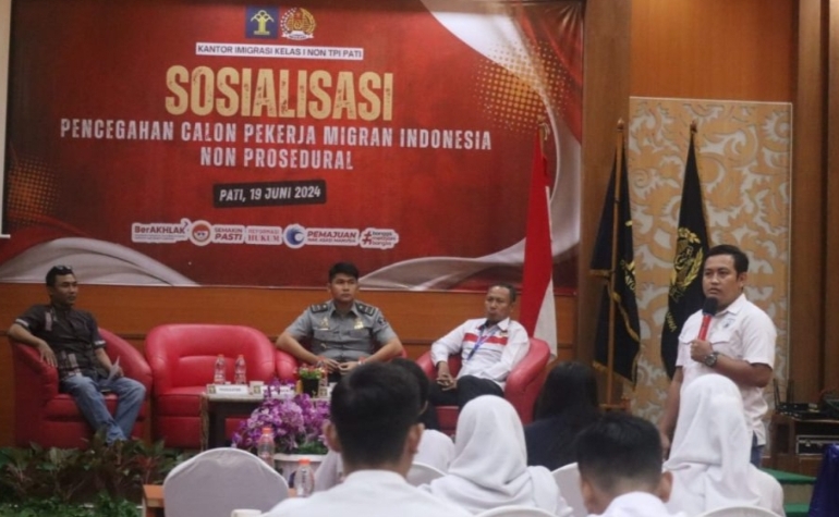 Kegiatan tersebut diikuti oleh perwakilan siswa SMA/ SMK/ MA di Kabupaten Pati dengan tujuan memberikan informasi mengenai perlindungan bagi Pekerja Migran Indonesia (PMI), prosedur penempatan PMI dan membekali peserta dengan tugas pokok dan fungsi Keimigrasian.