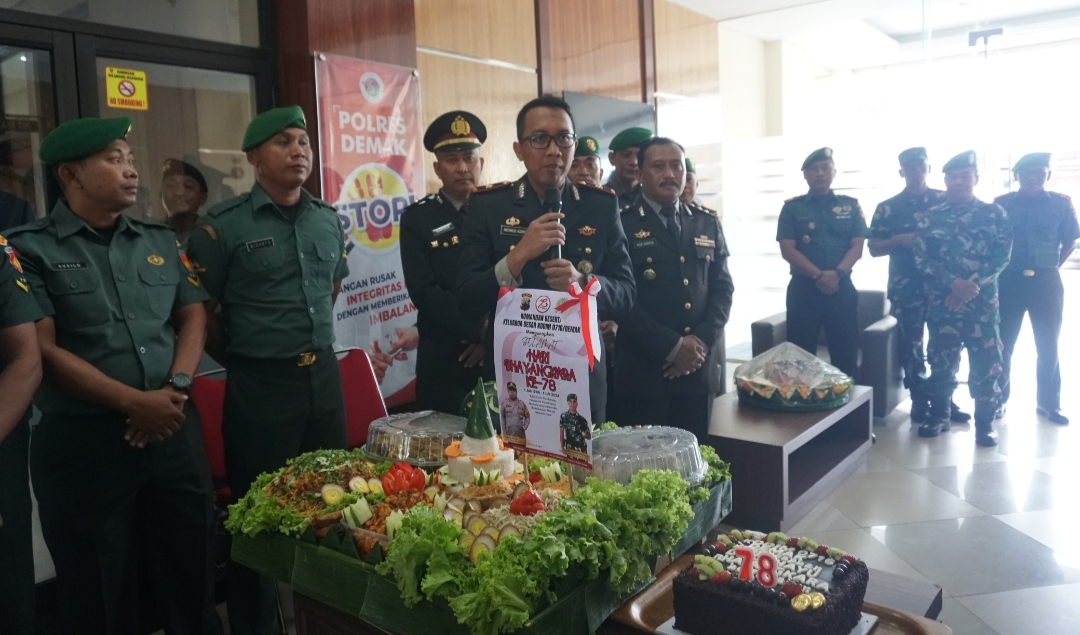 Wakapolres Demak, Kompol Aldino menyampaikan terima kasih dan terkejut atas kedatangan jajaran Kodim 0716 Demak untuk memberikan surprise Hari Bhayangkara ke-78.