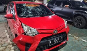 Jateng7.com.KUDUS-Pengendara mobil merah menabrak seorang Yang Merupakan Petugas Kepolisian Dari Polres Kudus .