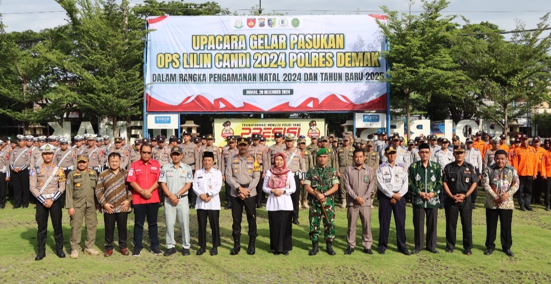 Jateng7.com.DEMAK – Polres Demak melaksanakan apel gelar pasukan dalam rangka operasi lilin Candi tahun 2024 di Lapangan Wicaksana Laghawa Polres Demak, Jum’at (20/12/2024)