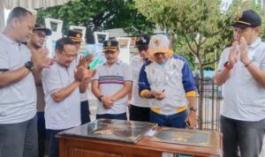 Disamping ditandai dengan penandatanganan prasasti, Edy juga mengalunkan lagu Nganggur dengan iringan Kings Band.