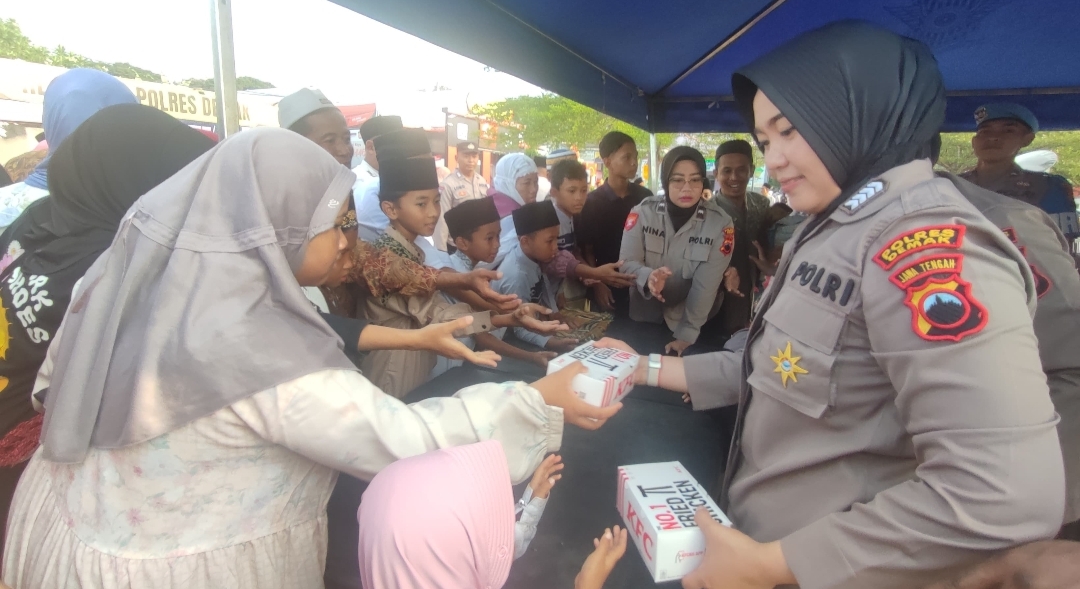 Puluhan personel tersebut ditempatkan di posko depan Masjid Agung Demak untuk membagikan makanan gratis tersebut kepada setiap jama’ah. Melalui kegiatan berbagi ini, Polres Demak berharap dapat memberikan dampak positif bagi masyarakat.