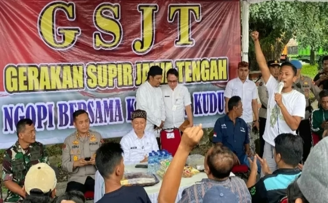 Massa aksi yang tergabung dalam Gerakan Sopir Jawa Tengah (GSJT) membubarkan diri setelah menerima surat keputusan resmi dari Polres Kudus dan Dinas Perhubungan setempat pada (19-6-2025).