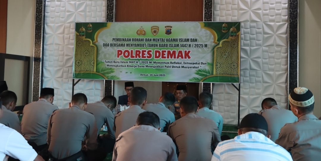 Jateng7.com.DEMAK – Kepolisian Resor (Polres) Demak menggelar acara pengajian, pembinaan rohani dan mental, serta do’a bersama, Kamis (26/6/2025) di Masjid Uswatun Hasanah Mapolres setempat.