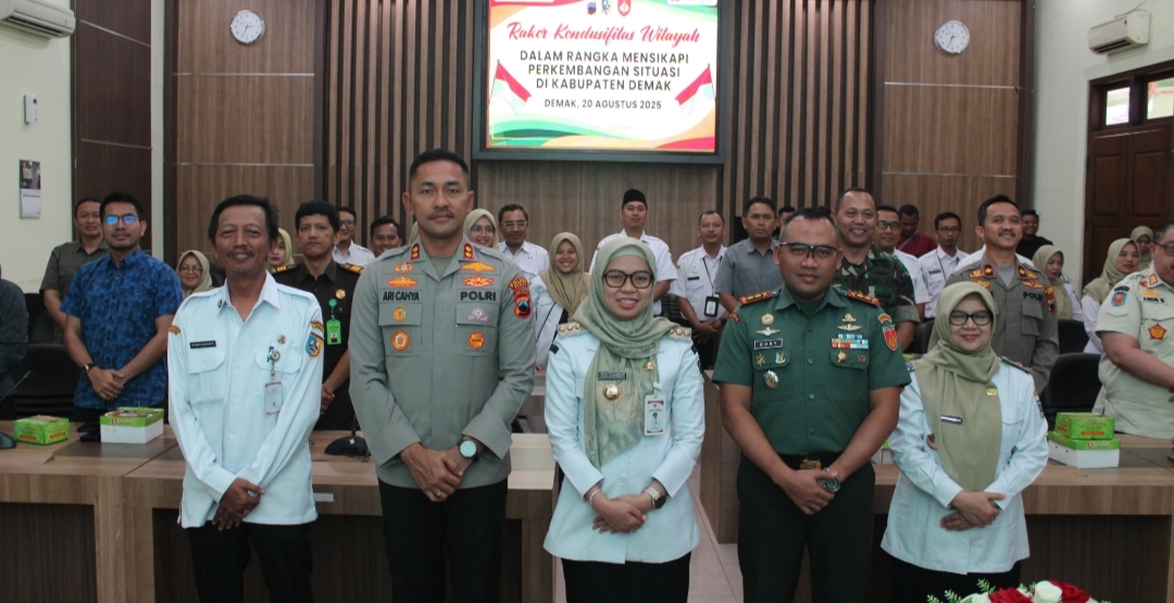 Jateng7.com.DEMAK– Forum Koordinasi Pimpinan Daerah (Forkopimda) Kabupaten Demak menggelar Rapat Koordinasi (Rakor) Kondusifitas Wilayah, Rabu (20/8/2025) siang.