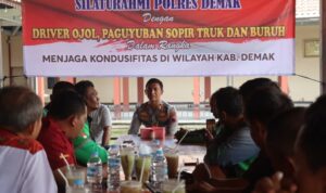 Kegiatan yang berlangsung hangat dan penuh keakraban tersebut dihadiri langsung oleh Kasat Lantas Polres Demak, AKP Thoriq Azis, beserta jajarannya. Acara ini menjadi momentum penting dalam memperkuat komunikasi dua arah antara aparat kepolisian dan masyarakat dari berbagai lapisan profesi, khususnya mereka yang aktif di sektor transportasi dan tenaga kerja.