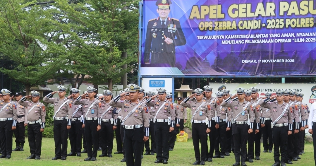 Jateng7.com.DEMAK– Polres Demak menggelar Apel Gelar Pasukan Operasi Zebra Candi 2025 di Lapangan Wicaksana Laghawa, Senin (17/11/2025).