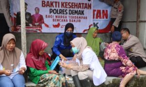 Selain bantuan sembako, Polres Demak juga menggelar bakti kesehatan berupa pemeriksaan kesehatan gratis bagi masyarakat. Layanan kesehatan tersebut dilakukan oleh Seksi Kedokteran dan Kesehatan (Dokkes) Polres Demak guna membantu warga yang mengalami gangguan kesehatan akibat banjir.