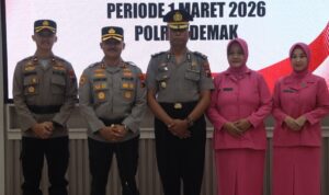 Jateng7.com.DEMAK – Polres Demak menggelar upacara kenaikan pangkat pengabdian periode 1 Maret 2026 di Aula Wicaksana Laghawa,pada(27/2/2026). Kegiatan tersebut diikuti pejabat utama, para Kapolsek jajaran, Ketua Pengurus Bhayangkari Cabang Demak beserta pengurus, serta personel Polres Demak.